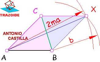 5 – Opción I : Por el extremo A hacer una paralela a BX y por X una paralela a AB. Donde ambos se corten es el tercer vértice C.